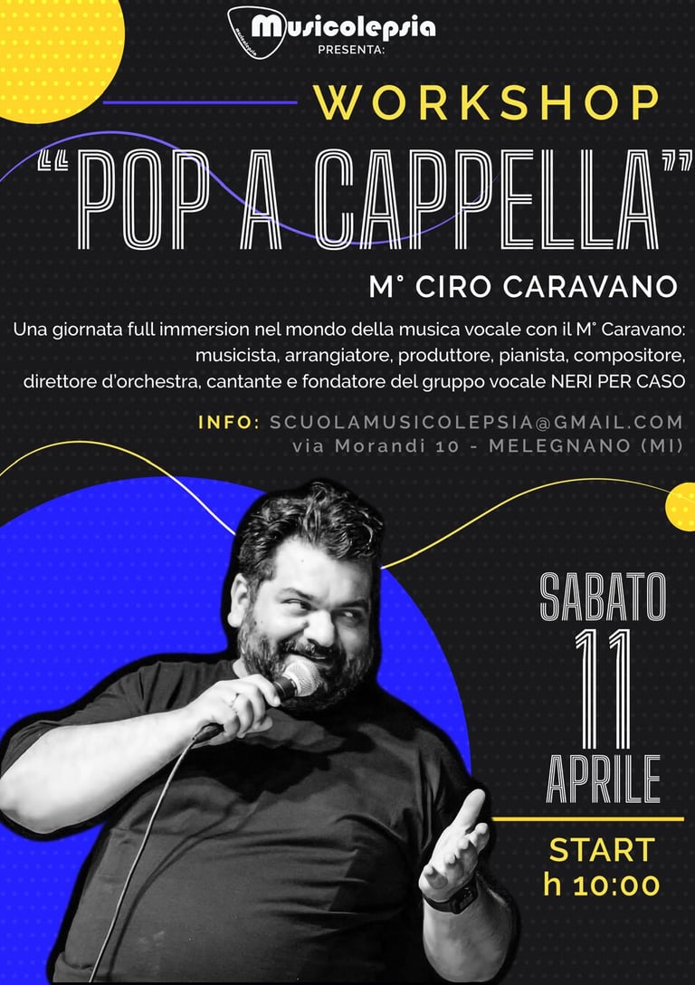 Il workshop “POP A CAPPELLA” del M° Ciro Caravano è una full immersion nel mondo della musica vocale attraverso le tradizioni e le nuove espressioni del canto a cappella.